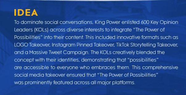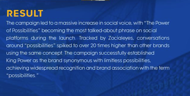We design new chapter of King power as The standard of deliciousness form Thai expert tongueswith empower brand trust and credibility with ‘Give & Take’ content to by accredit restaurant and get accredited from consumer. Incorporate brand collateral at restaurant to emphasize on the meaningfulness of the brand